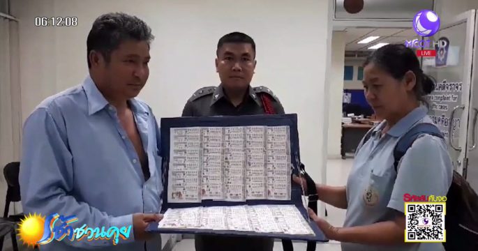 แท็กซี่พลเมืองดีเก็บลอตเตอรี่ 300 ใบ หล่นอยู่บนทางเท้าฝั่งตรงข้ามห้างเมเจอร์ ห้าแยกปากเกร็ด นำไปรอส่งคืนเจ้าของที่ สภ.ปากเกร็ด จ.นนทบุรี เจ้าของสุดดีใจ มอบลอตเตอรี่ 2 ใบเป็นสินน้ำใจ