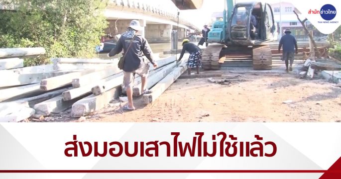 MEA ส่งมอบเสาไฟไม่ใช้แล้วทำแนวกันคลื่นชายฝั่งป้อมพระจุลฯ