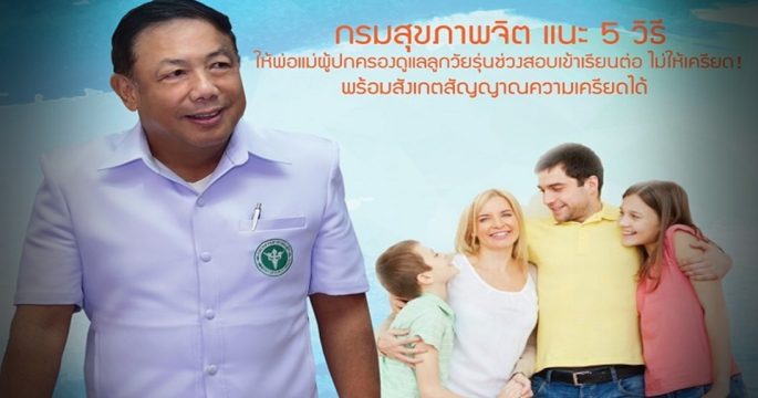 กรมสุขภาพจิตห่วงช่วงสอบเข้าเรียนต่อ แนะ 5วิธีผู้ปกครองดูแลลูกไม่ให้เครียด ‘ให้กำลังใจ-ชื่นชมในความพยายาม-ช่วยแบ่งเวลาอ่านหนังสือ-สอนให้ยอมรับความผิดพลาด’