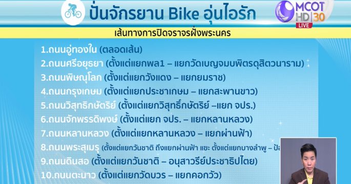 ประชาสัมพันธ์ แผนการจัดระบบการจราจรกิจกรรมปั่นจักรยาน Bike อุ่นไอรัก 9 ธันวาคม 2561 ซึ่งจะปิดจราจรฝั่งพระนคร-ฝั่งธนบุรี ตั้งแต่เวลา 12.00 – 20.00 น. เส้นทางปั่นจักรยาน