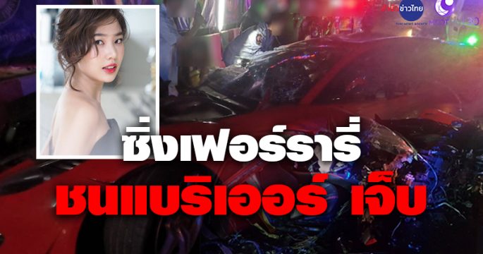 “ฝน ศนันธฉัตร” ดาราสาวนั่งเฟอรารี่มากับนักแข่งดัง ชนแบริเออร์ ถ.ศรีนครินทร์ พื้นที่สมุทรปราการ คนขับขาหัก ส่วนดาราสาวอาการปลอดภัย