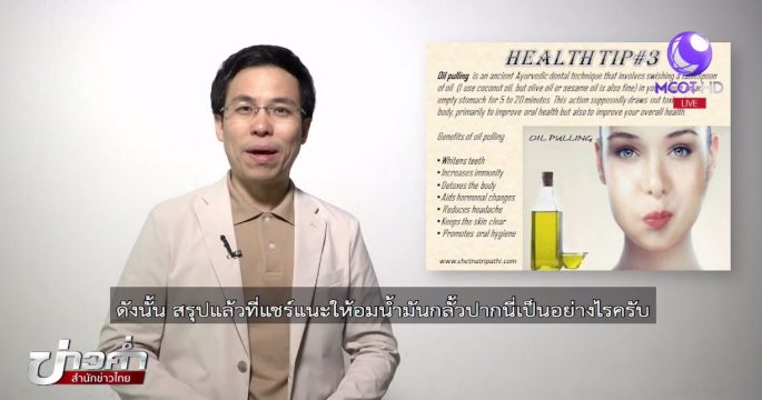 บนสังคมออนไลน์แชร์ให้ใช้น้ำมันอมกลั้วปาก จะช่วยรักษาสุขภาพฟันได้อย่างดี เรื่องนี้จริงหรือไม่ ? ติดตามจากศูนย์ชัวร์ก่อนแชร์