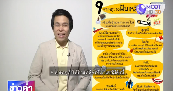 บนสังคมออนไลน์แชร์ว่ามี 9 สาเหตุที่ทำให้ฟันเหลือง ทั้งการดื่มชากาแฟ สูบบุหรี่ ไปจนถึงอายุ และพันธุกรรม เรื่องนี้จริงหรือไม่ ติดตามจากศูนย์ชัวร์ก่อนแชร์