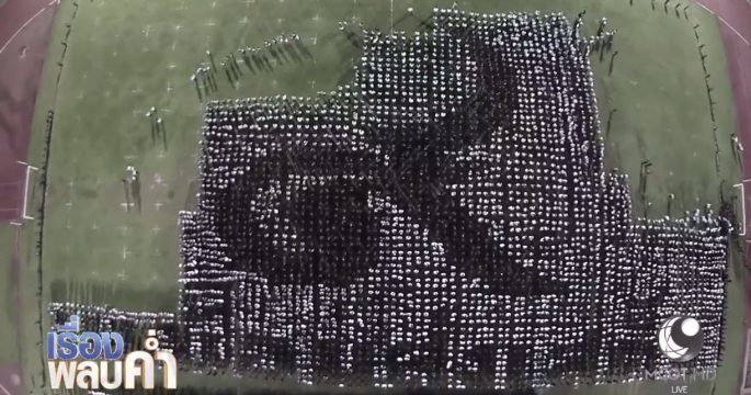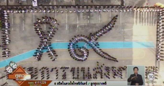 การแปรอักษรของคณะผู้บริหาร คณาจารย์ บุคลากร และนักศึกษา วิทยาลัยการอาชีพตรัง กว่า 900 คน เข้าร่วมแปรอักษรเป็นเลข 9 ไทย