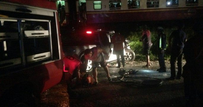 เกิดอุบัติเหตุรถไฟชนกระบะทางจุดตัดในหมู่บ้านที่สุราษฎร์ฯ เมื่อเช้ามืด คนขับเสียชีวิต และภรรยาบาดเจ็บ คาดไม่ทันสังเกตและเป็นทางตัดไม่มีแผงกั้น