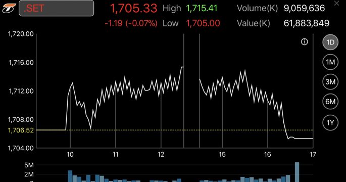 หุ้นไทยติดลบ 1.19 จุด จากแรงขายทำกำไร