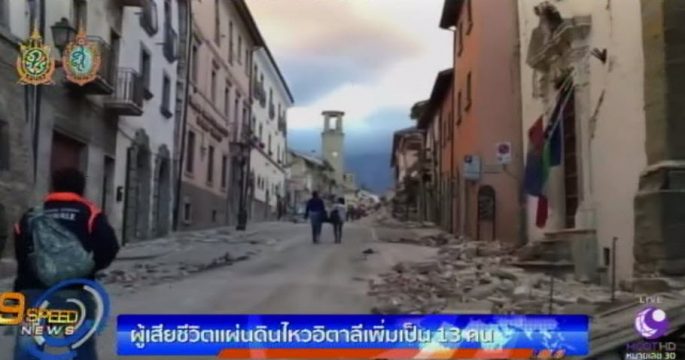 ยอดผู้เสียชีวิตจากเหตุแผ่นดินไหวรุนแรง 6.2 ทางตอนกลางของอิตาลี เมื่อช่วงเช้าที่ผ่านมา เพิ่มเป็นอย่างน้อย 13 คน และยังมีผู้สูญหายอีกจำนวนหนึ่ง
