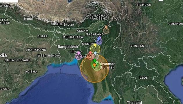 สำนักงานสำรวจธรณีวิทยาสหรัฐรายงานว่า เกิดแผ่นดินไหวระดับ 6.8 ทางภาคกลางของเมียนมาร์ในวันนี้