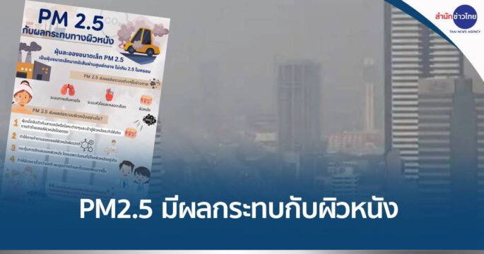 สถาบันโรคผิวหนัง เผยฝุ่นละอองในอากาศเป็นปัญหาที่พบมากขึ้นทั่วโลกและกำลังเป็นปัญหาที่สำคัญของไทย โดยพบค่าฝุ่นละอองขนาดเล็ก PM2.5 ฝุ่นขนาดเล็กมาก มีเส้นผ่านศูนย์กลางไม่เกิน 2.5 ไมครอน เกินค่ามาตรฐานทั้งในกรุงเทพฯ ปริมณฑล และอีกหลายจังหวัด ฝุ่นที่มีอนุภาคขนาดเล็กมากนี้นอกจากจะทำให้มีปัญหาต่อระบบทางเดินหายใจ ระบบหัวใจและหลอดเลือดแล้ว ยังส่งผลกระทบต่อผิวหนังด้วย