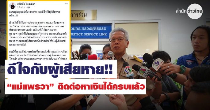 รองปลัด ยธ.เผยแม่ของ ‘แพรวา 9 ศพ’ ติดต่อมาหาเงินชดใช้ได้ครบแล้ว ด้านทนายฝ่ายผู้เสียหาย ยังไม่ได้รับการประสาน ภาวนาขอให้ข่าวเป็นจริง