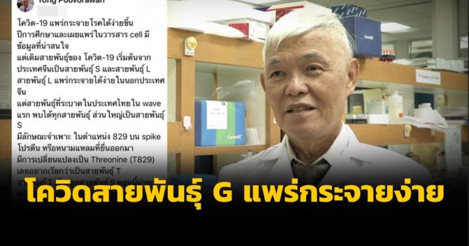 นพ.ยง เผยสายพันธุ์โควิด-19 ที่ระบาดในไทยช่วงแรก เป็นสายพันธุ์ S ทั่วโลกเป็นสายพันธุ์G เชื่อว่าถ้าหากมีการระบาดระลอก2 จะเป็นสายพันธุ์G ที่ย้อนกลับมาจากต่างประเทศ