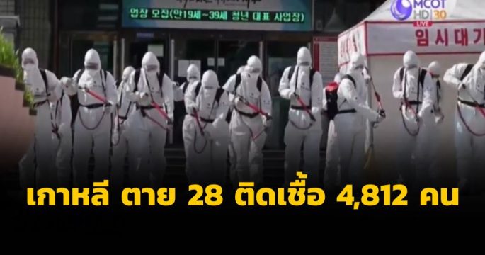การแพร่ระบาดของเชื้อโควิด-19 ในเกาหลีใต้ยังวิกฤติ ล่าสุดมีผู้เสียชีวิตเพิ่มอีก 3 คน ทำให้ยอดรวมเป็น 28 คน ด้านทางการเดินหน้าส่งทหารออกฉีดพ่นยาฆ่าเชื้อตามสถานที่ต่างๆ ในเมืองแทกู