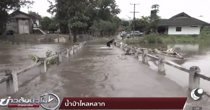 บ้านปง ต.ต้าผามอก อ.ลอง จ.แพร่ น้ำป่าทะลักท่วมบ้านเกือบ 30 หลัง ถนนสายลอง-แพร่ น้ำท่วมหลายจุด เช่นเดียวกับที่ลำปาง น้ำป่าหลากท่วมสะพานเชื่อมระหว่างหมู่บ้าน ระดับน้ำสูงกว่า 1 เมตร