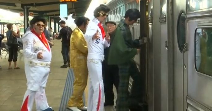 บรรดาแฟนคลับของเอลวิส เพรสลีย์ตำนานเพลงร็อกแอนด์โรลหลายร้อยคนจากทั่วโลกพากันแต่งกายเลียนแบบในการแสดงที่สถานีรถไฟเซนทรัลในนครซิดนีย์