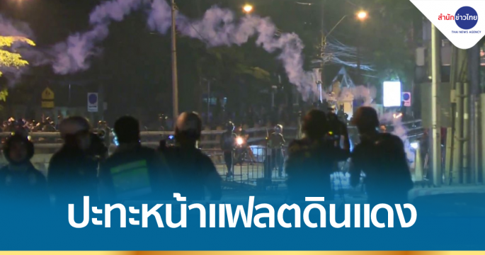 ชุลมุนหน้าแฟลตดินแดง เมื่อเวลา 20.00 น. ผู้ชุมนุมขว้างพลุดาวกระจายใส่เจ้าหน้าที่ ขณะที่เจ้าหน้าที่ยิงแก๊สน้ำตาผลักดันม็อบให้ล่าถอยไปยังแยกโบสถ์แม่พระฟาติมา