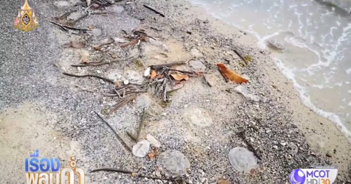 ชาวบ้านแตกตื่น! พบซากแมงกะพรุนจำนวนมาก ถูกคลื่นซัดเกลื่อนชายหาดคลองแหลมป่อง ระยะทางกว่า 1 กม. คาดเกิดจากสภาพอากาศแปรปรวน ช่วงเปลี่ยนฤดู
