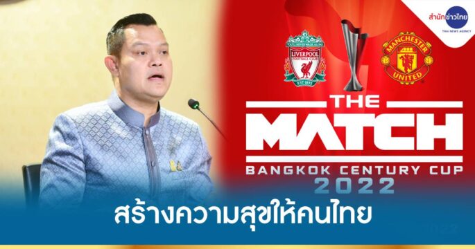 โฆษกรัฐบาล ชมผู้จัด THE MATCH Bangkok Century Cup 2022 “แมนยู-ลิเวอร์พูล” สร้างความสุขให้คนไทย สอดคล้องนโยบาย “นายกฯ” ให้ไทยเป็นแลนด์มาร์คจัดกิจกรรมระดับนานาชาติ-ผลักดัน Soft Power ด้านกีฬาของไทย สร้างมูลค่าทางเศรษฐกิจของประเทศ