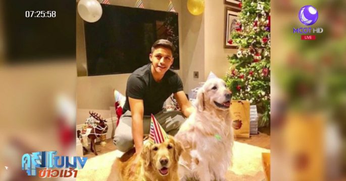 อเล็ก ซานเชซ จับหมาอะตอม กับฮัมเบอร์ และลูกของเขาใส่ชุดแข่งของแมนฯ ยูไนเต็ด แล้วถ่ายภาพมาโชว์แฟนๆ บนอินสตาแกรมทันที
