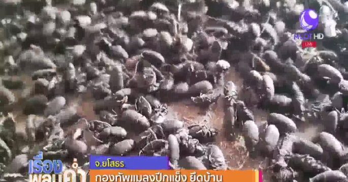 ชาวบ้านที่ยโสธรทุกข์หนัก กองทัพแมลงปีกแข็งสีดำ หรือมอดกระเบื้อง หลายหมื่นตัวบุกเข้าบ้าน ไต่ยั้วเยี้ยทุกซอกทุกมุมจนอยู่ในบ้านไม่ได้