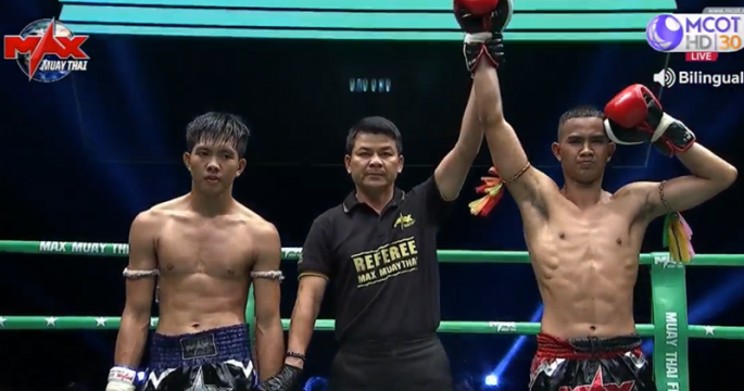 ศึกแม็กซ์มวยไทย วานนี้ (26 ส.ค.) คู่เอก สยาม เกียรตินาวี ชนะคะแนน แสงสุรีย์ ส.สิรินทรา หลังชกครบ 3 ยก