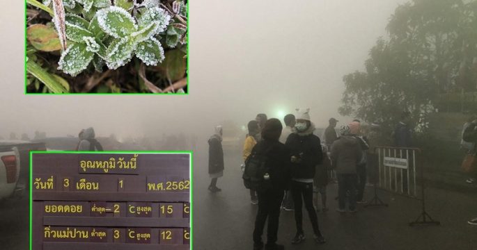 เชียงใหม่ 3 ธ.ค.- หนาวได้อีก! นักท่องเที่ยวเชียงใหม่ยังตื่นตาหลังปีใหม่บนดอยอินทนนท์ แม่คะนิ้งจับยอดหญ้า อุณหภูมิ -2 องศาฯ นายวสันต์ จันทร์เทพ ผู้ช่วยหัวหน้าอุทยานแห่งชาติดอยอินทนนท์ อ.จอมทอง จ.เชียงใหม่ เปิดเผยว่า เช้านี้ (3 ม.ค.) อุณหภูมิต่ำสุดยอดดอย -2 องศาเซลเซียส เกิดปรากฏการณ์น้ำค้างแข็งหรือแม่คะนิ้งบริเวณจุดชมวิว กม.ที่ 43-45 ให้นักท่องเที่ยวได้ชมอย่างต่อเนื่องและเก็บภาพความประทับใจหลังเทศกาลปีใหม่ ท่ามกลางไอหมอก ขณะที่กิ่วแม่ปานอุณหภูมิต่ำสุด 3 องศาฯ และที่ทำการอุทยานฯ 8 องศาฯ ส่วนจำนวนนักท่องเที่ยวในพื้นที่หลังปีใหม่เริ่มเบาบางเหลือประมาณ 7,600 คน ต่างจากก่อนช่วงเทศกาลเนืองแน่นมาก เพราะส่วนใหญ่เดินทางกลับไปทำงาน.-สำนักข่าวไทย