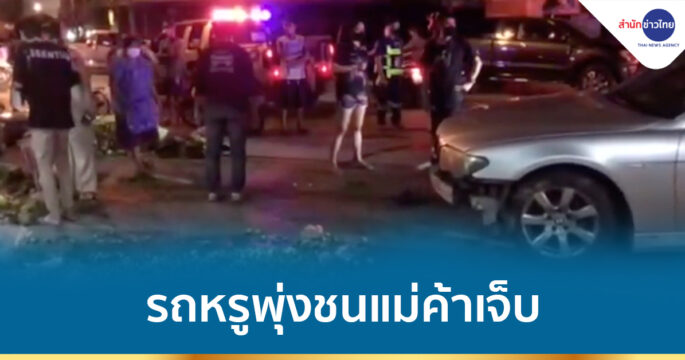 รถหรูติดเครื่องจอดนอนในซอยใกล้ตลาด เพื่อนเคาะกระจกรถปลุก สะลึมสะลือตื่น เหยียบคันเร่งเสย จยย. จอดริมถนน ก่อนพุ่งชนแม้ค้าที่นั่งขายของได้รับบาดเจ็บ