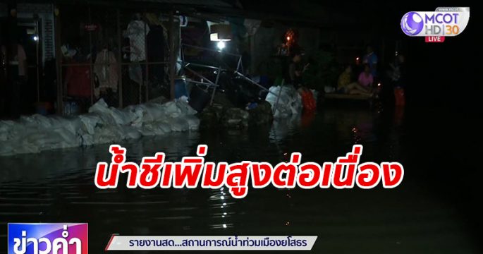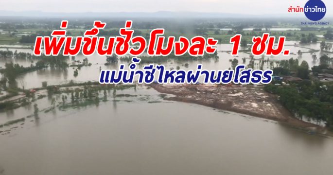 วันนี้ น้ำในแม่น้ำชีจะไหลผ่าน จ.ยโสธร ในปริมาณสูงสุด ระดับน้ำเพิ่มขึ้นชั่วโมงละ 1 เซนติเมตร โดยที่บ้านหนองหอย ต.เขื่องคำ อ.เมืองยโสธร ระดับน้ำยังคงเพิ่มสูงขึ้น