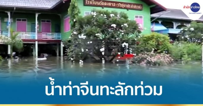 แม่น้ำท่าจีนทะลักท่วม อ.สองพี่น้อง จ.สุพรรณบุรี รร.อนุบาลวัดดงตาล ท่วมสูง 80 ซม.-1 เมตร ส่วนที่วัดต้องช่วยกันย้ายศพหนีน้ำขึ้นบนศาลาการเปรียญ