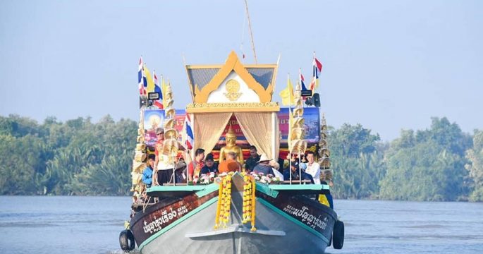 ฉะเชิงเทรา 2 พ.ย.- พุทธศาสนิกชนคึกคักร่วมพิธีปล่อยขบวนเรือหลวงพ่อพระพุทธโสธรล่องแม่น้ำบางปะกง สืบสานประเพณีเก่าแก่ของจังหวัดฉะเชิงเทรา เมื่อเวลา 06.30 น. (2 พ.ย.) นายสุวิทย์ คำดี ผู้ว่าราชการจังหวัดฉะเชิงเทรา พร้อมพระธรรมมังคลาจารย์ เจ้าอาวาสวัดโสธรวรารามวรวิหาร ร่วมในพิธีปล่อยขบวนเรือหลวงพ่อพระพุทธโสธร บริเวณท่าน้ำวัดโสธรวรารามวรวิหาร จังหวัดฉะเชิงเทรา ท่ามกลางพุทธศาสนิกชนเข้าร่วมพิธีจำนวนมาก โดยวันแรกขบวนแห่อัญเชิญองค์หลวงพ่อพระพุทธโสธรจะล่องไปตามลำน้ำบางปะกงผ่านอำเภอบ้านโพธิ์และอำเภอบางปะกง แวะเทียบท่าน้ำตามวัดต่าง ๆ บริเวณ 2 ฝั่งแม่น้ำบางปะกง ส่วนวันพรุ่งนี้ (3 ก.ย.) ขบวนแห่องค์หลวงพ่อพระพุทธโสธรจะเคลื่อนขบวนไปยังวัดจุกเฌอ อ.เมือง จากนั้นจะเคลื่อนไปยังอำเภอคลองเขื่อนและอำเภอบางคล้า สำหรับประเพณีแห่องค์หลวงพ่อพระพุทธโสธรทางน้ำสืบทอดกันมากว่า 100 ปี หลังเกิดโรคระบาด ทำให้ชาวบ้านต่างบนบานองค์หลวงพ่อพระพุทธโสธรขอให้ช่วยขจัดปัดเป่าโรคภัยจนหมดสิ้น จึงได้จัดพิธีแห่องค์หลวงพ่อพระพุทธโสธรเป็นต้นมาอย่างยิ่งใหญ่ เพื่อเป็นสิริมงคล ส่วนปีนี้จัดแบบเรียบง่าย ไม่มีเรือริ้วขบวนเหมือนทุกปีที่ผ่านมา เพื่อถวายเป็นพระราชกุศลพระบาทสมเด็จพระปรมินทรมหาภูมิพลอดุลยเดช บรมนาถบพิตร (รัชกาลที่ 9).-สำนักข่าวไทย