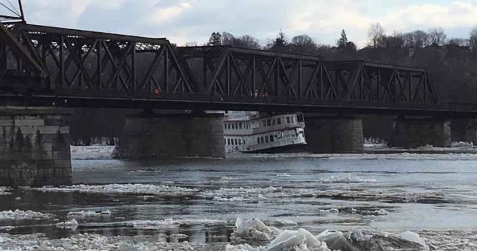 เรือ 8 ลำล่องลอยไปกับตามกระแสน้ำในแม่น้ำฮัดสันที่นครนิวยอร์ก ก่อนที่จะมีเรือลากจูงมาเคลื่อนย้ายเรือที่ติดอยู่ตามแผ่นน้ำแข็งออกไป