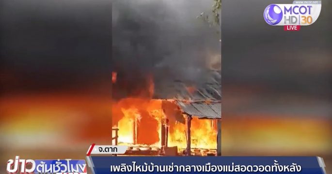 เพลิงไหม้บ้านเช่าคนงานติดกับโรงเรียนบ้านแม่กาษา หมู่ที่ 2 ตำบลแม่กาษาใน อ.แม่สอด จ. ตาก คนงานร้องไห้ เงินที่เก็บมาทั้งปี 7,000 บาท ไหม้ไฟหมดและเหลือเพียงเสื้อผ้าชุดเดียวที่ติดตัวทำงาน