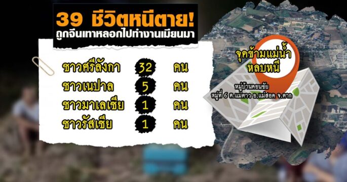 ฝ่ายความมั่นคงแม่สอด ช่วยชีวิตชาวศรีลังกาและคนต่างชาติอีกหลายประเทศรวม 39 คน หนีตายข้ามชายแดนหลังถูกหลอกไปทำงานกลุ่มจีนเทาแก๊งคอลเซ็นเตอร์ ในเมียนมา