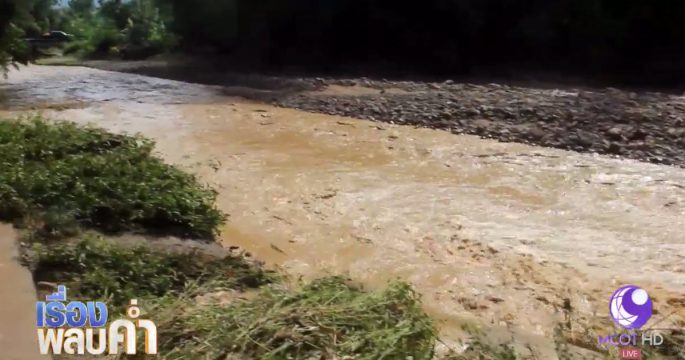 น้ำป่าทะลักท่วมหมู่บ้านใน อ.แม่สะเรียง จ.แม่ฮ่องสอน ที่นาถูกน้ำป่าพัดข้าวได้รับความเสียหายเป็นบริเวณกว้าง