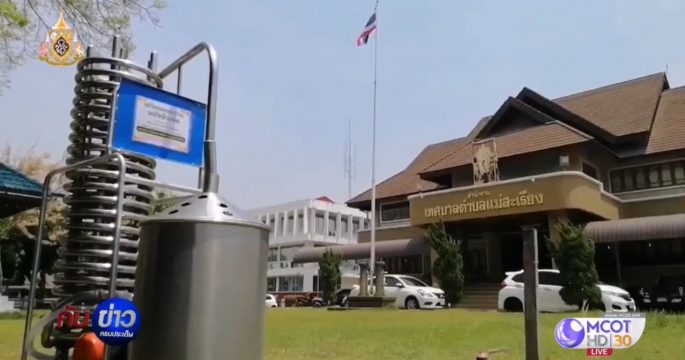 สำนักปฏิบัติธรรมจังหวัดแม่ฮ่องสอน มอบสิ่งประดิษฐ์เครื่องสลายหมอกควันที่ใช้น้ำผ่านรอบพีระมิดสร้างแรงเหวี่ยงเหนี่ยวนำให้อากาศที่อยู่โดยรอบเกิดการเคลื่อนไหว ใช้ไล่หมอกควัน ต.แม่สะเรียง
