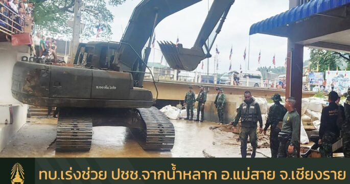 ทบ.เร่งช่วยประชาชนจากเหตุน้ำหลากพื้นที่ อ.แม่สาย จ.เชียงราย ส่งทหารช่างวาง Big Bag ป้องกันน้ำเอ่อล้นเข้าท่วมบ้านเรือนประชาชน