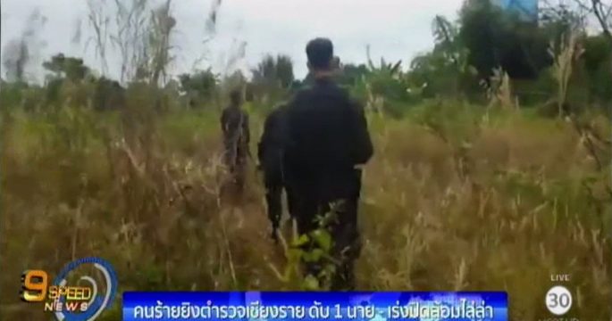 ตำรวจภูธรจังหวัดเชียงรายกระจายกำลังเข้าปิดล้อมพื้นที่ป่าละเมาะใกล้รีสอร์ต อ.แม่สาย หลังก่อเหตุยิงตำรวจเสียชีวิต 1 บาดเจ็บ 1 นาย ขณะกำลังเข้าไปหาเบาะแสภายในรีสอร์ต