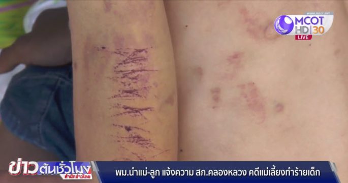 พัฒนาสังคมสังคมและความมั่นคงของมนุษย์ จังหวัดระยอง พาเด็กชายวัย 14 ปี และแม่แท้ๆ เข้าแจ้งความกับตำรวจ สภ.คลองหลวง จ.ปทุมธานี กรณีเด็กชายถูกแม่เลี้ยงทำร้าย