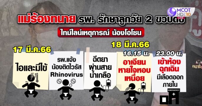 แม่ร้องทนายรณณรงค์ ลูกวัย 2 ขวบ เป็นไข้ ไอ หมอรับไว้ดูอาการบอกไม่เป็นอะไรมาก แต่สุดท้ายเลือดออกภายใน โรงพยาบาลบอกอุปกรณ์ไม่พร้อม ขอส่งต่อไปรักษาที่อื่น สุดท้ายน้องเสียชีวิต