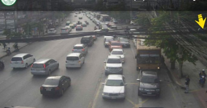 จราจรเช้าวันศุกร์ ถนนเพชรบุรี ขาเข้า จากแยกใต้ด่วนเพชรบุรี มุ่งหน้าแยกประตูน้ำ รถมาก