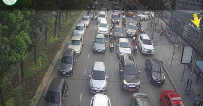สวพ.FM 91 รายงานจราจรเช้าวันจันทร์ ถนนรัชดาภิเษก ขาเข้า แยกพระราม9 มุ่งหน้าโรงเรียนวัฒนาวิทยาลัย การจราจรติดขัดมาก ท้ายสะสมแน่นแยกเทียมร่วมมิตร