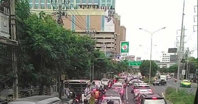 การจราจรเช้าวันจันทร์ ถนนพระราม 6 จากแยกพงษ์พระราม มุ่งหน้าไปแยกอุรุพงษ์ รถหนาแน่น เคลื่อนตัวช้า