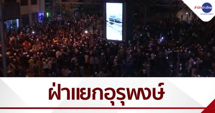 ผู้ชุมนุมฝ่าแนวกั้นตำรวจที่แยกอุรุพงษ์