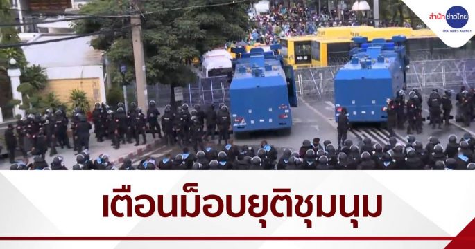เวลา 16.00 น. บริเวณแยกเกียกกาย ผู้ชุมนุมยังคงปักหลัก เจ้าหน้าที่ประกาศเตือนครั้งสุดท้ายให้ยุติชุมนุม พร้อมเติมกำลังเข้ามาเรื่อยๆ
