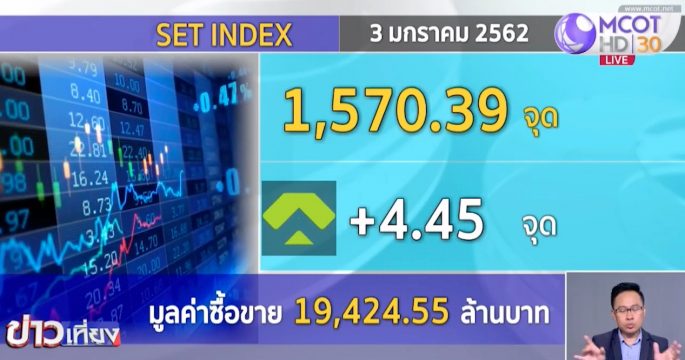 ภาวะตลาดหุ้นไทยช่วงเช้า อยู่ที่ 1,570.39 จุด เพิ่มขึ้น 4.45 จุด มูลค่าการซื้อขาย 19,424.55 จุด