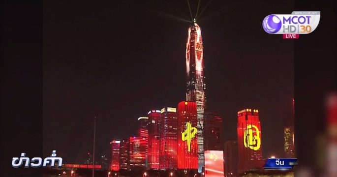 อาคารสูงระฟ้าในเมืองเซินเจิ้น มณฑลกวางตุ้งของจีน กลายเป็นฉากหลังในงานแสดงแสงสีเสียงเมื่อคืนวันศุกร์ โดยแสงและสีจะเปลี่ยนแปลงสอดคล้องไปกับดนตรีที่บรรเลง