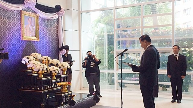กษัตริย์กัมพูชาเสด็จฯ ไปทรงวางพวงมาลาแสดงความอาลัย ที่สถานเอกอัครราชทูต ณ กรุงพนมเปญ