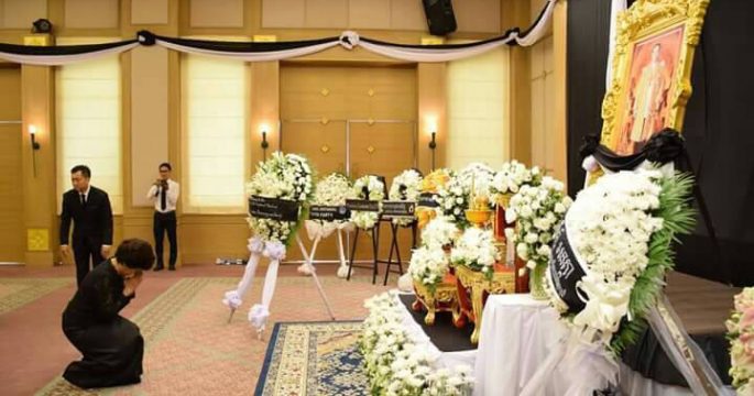 กษัตริย์กัมพูชาทรงวางพวงมาลาแสดงความอาลัย