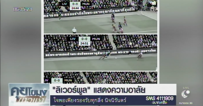 ฟุตบอลนัดแดงเดือด ลิเวอร์พูล เสมอ แมนฯ ยูไนเต็ดไป 0-0 โดยทีมงานหงส์แดง ขึ้นข้อความตรงป้ายข้างสนามถวายความอาลัยแด่พระบาทสมเด็จพระปรมินทรมหาภูมิพลอดุลยเดช