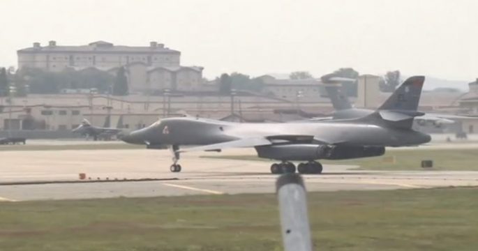 เครื่องบินทิ้งระเบิดความเร็วเหนือเสียงของสหรัฐ 2 ลำบินเหนือน่านฟ้าเกาหลีใต้วันนี้ นับเป็นการแสดงแสนยานุภาพของสหรัฐเป็นครั้งที่ 2