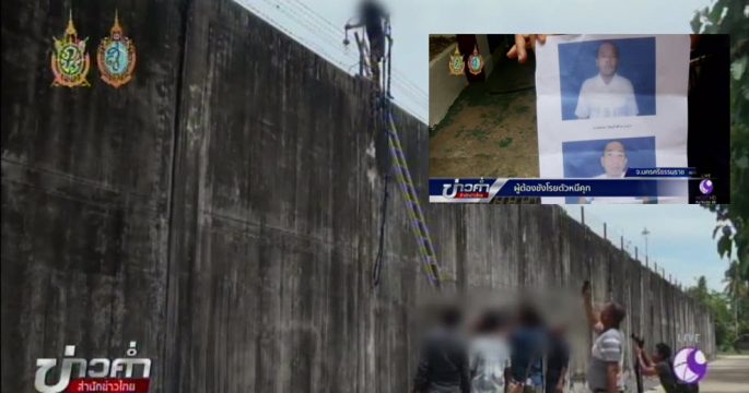 เจ้าหน้าที่เร่งติดตามตัว 2 ผู้ต้องขังหลบหนีออกจากเรือนจำนครศรีธรรมราชก่อเหตุใช้ผ้าห่มมัดต่อกันเป็นเชือกโรยตัวจากกำแพงสูง 10 เมตร